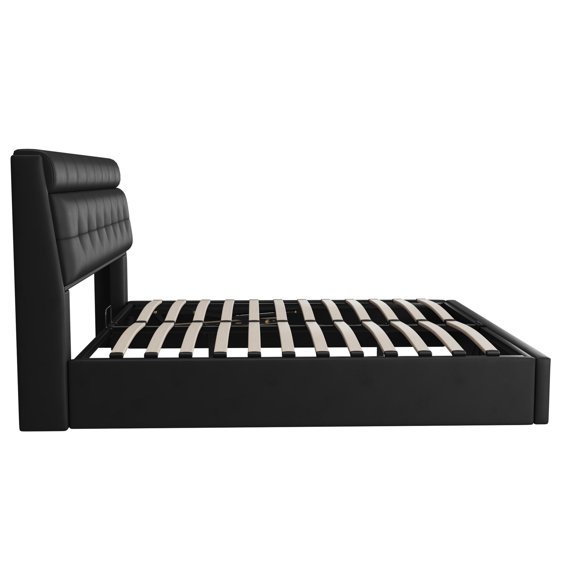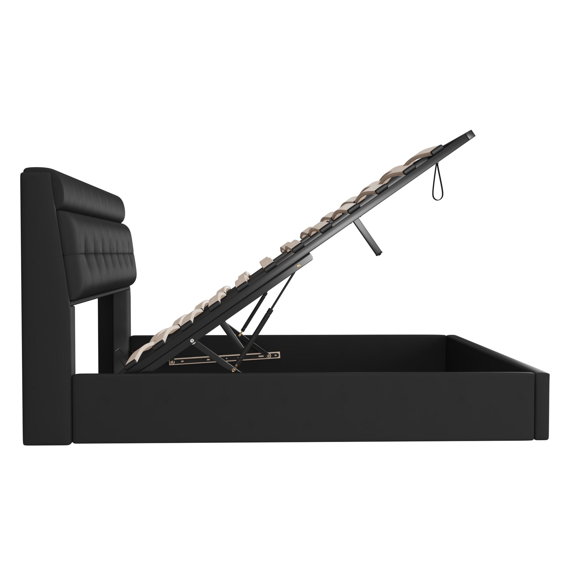 Faux Leather Ottoman King Size Bed with Headboard Storage in Black